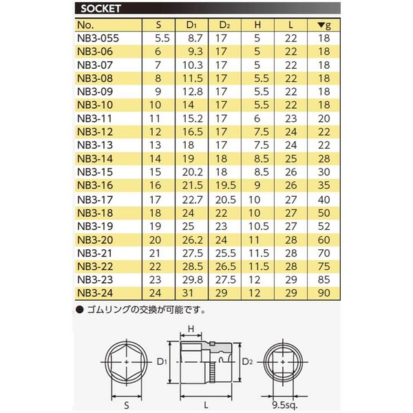 Kyoto Machine Tools (KTC) Neplos 3/8 inch (9.5 mm) Socket NB3-17