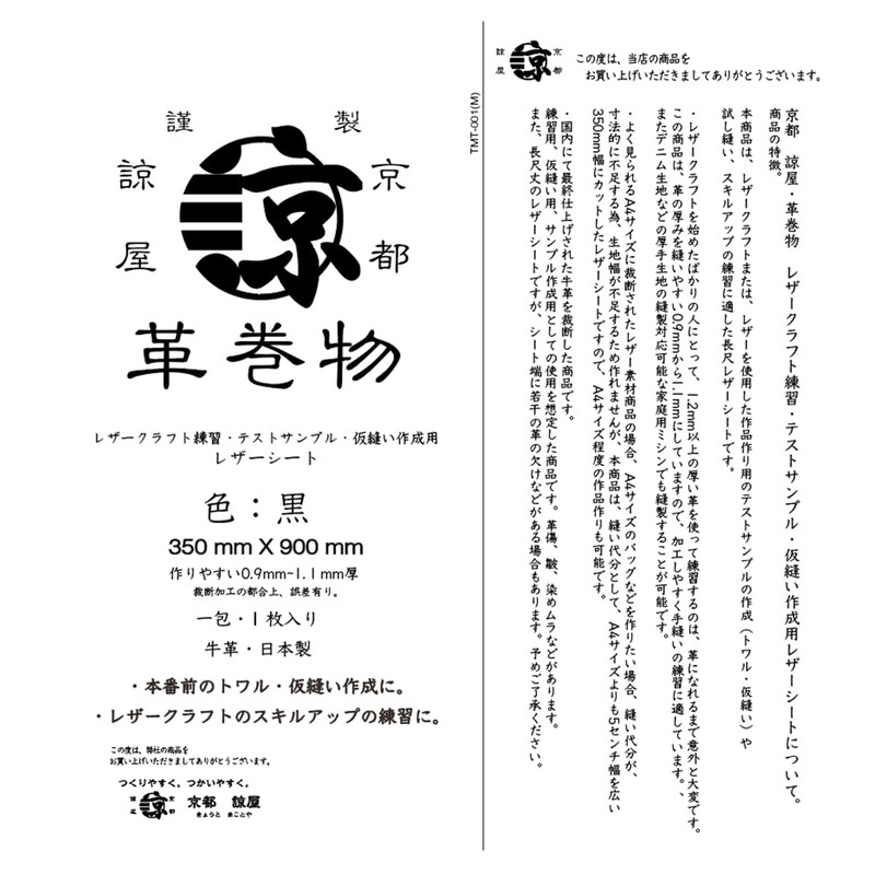 [Kyoto Ryoya] Leather Scroll Sheet for Practice/Beginners (90, Black)