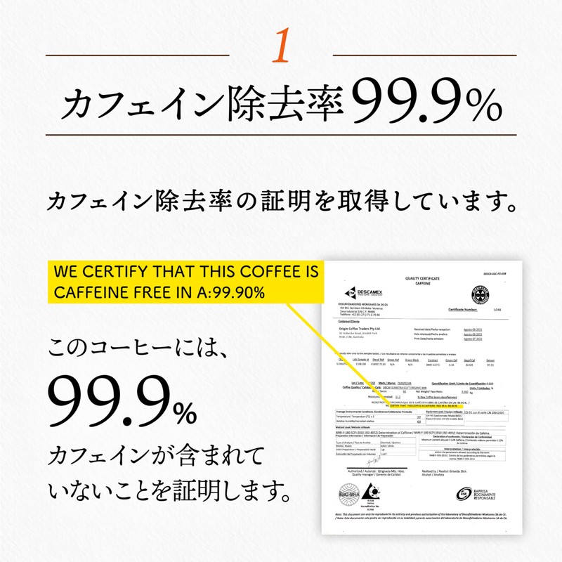 - Even if your child wants to drink, this organic decafe will not exceed the maximum amount of caffeine intake, so you can drink organic caffeine-less coffee by parents and children