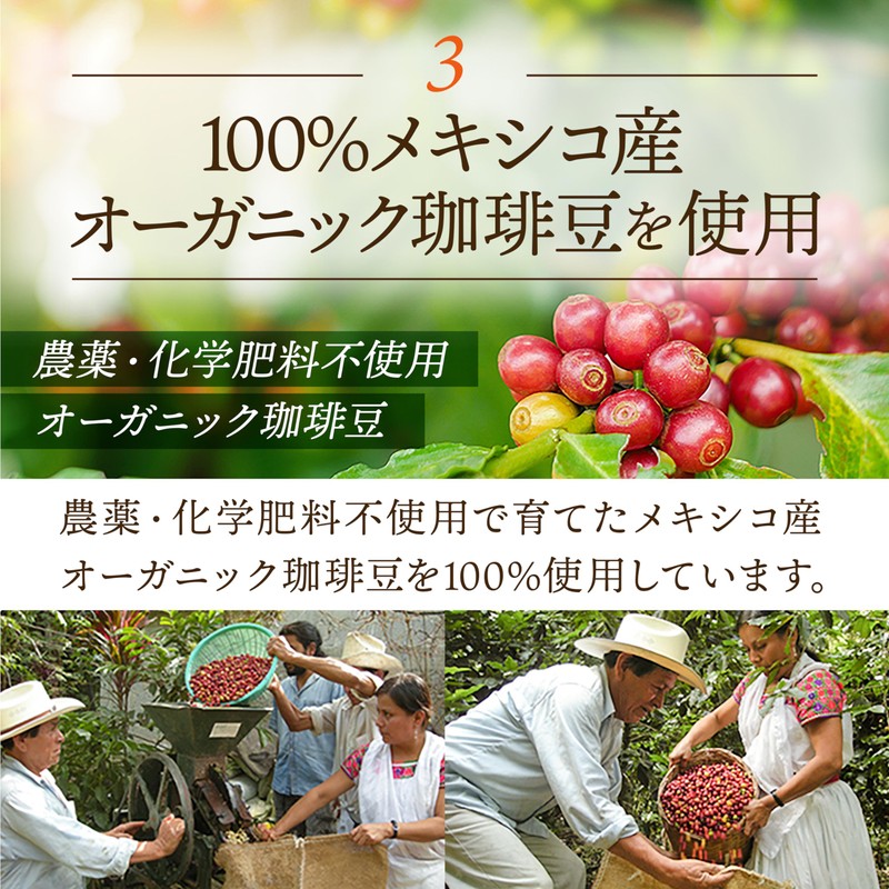 - Made with organic beans produced in Mexico, which is certified organic JAS that does not have adverse effects on the human body