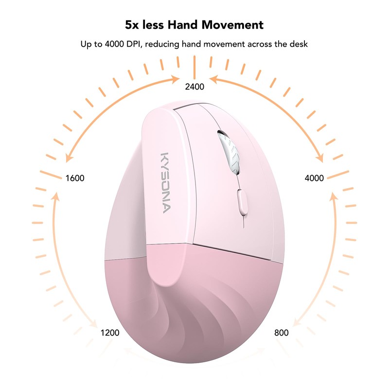 KYSONA EM18 Wireless Ergonomic Vertical Mouse, Ergo Design, Bluetooth Cordless Mouse, Silent Click, 5-Level Adjustable DPI, Carpal Tunnel Mice for Computer, PC, Mac, Laptop, Pink