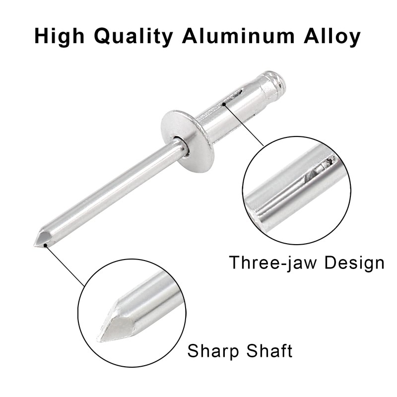 • Durable Material: The pop rivet is made of quality aluminum alloy, the surface is smooth and burr free, the structure is simple and strong, corrosion resistance, sturdy and durable.