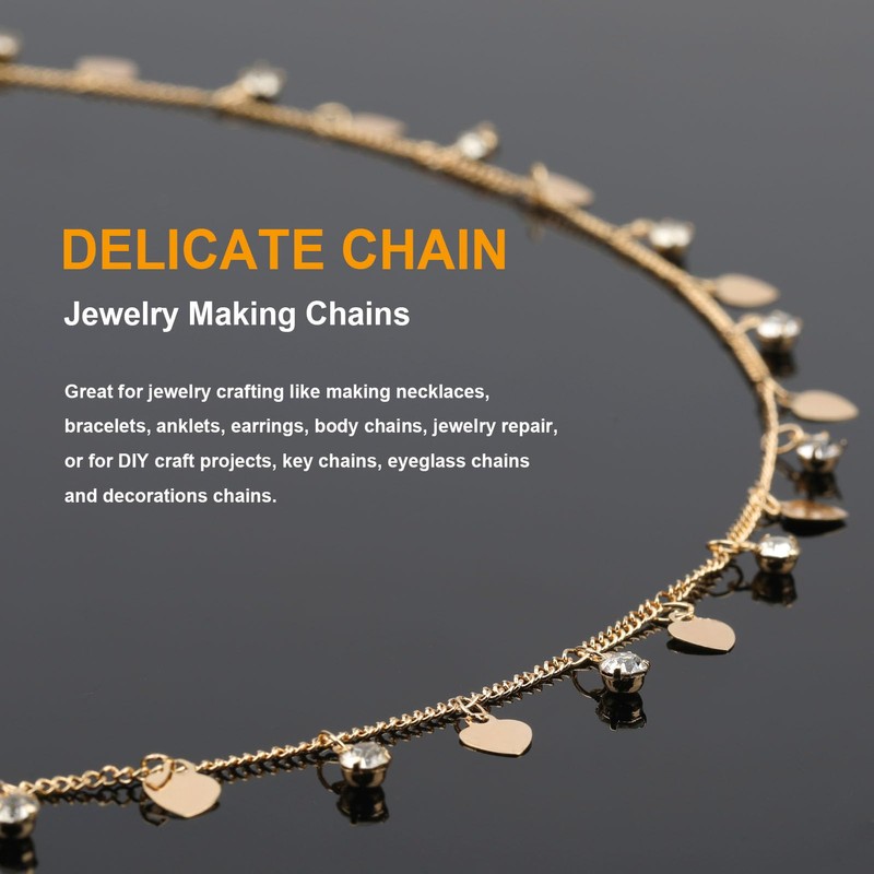 - 【Wide Application】The gold plated chain bulks have a wide range of applications, is great for DIY jewelry craft like necklaces, bracelets, earrings, chokers, anklets, etc; also can be used as an eyeglasses chain, mask holder chain, key chain, body chain, cloth/bag decoration chain, and so on.