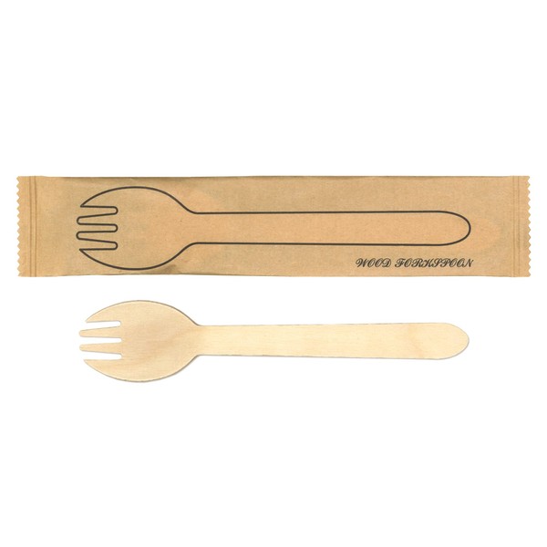 Kyushu Shikko WSF-004N Wooden Cutlery, Craft Enclosed Wood Fork Spoons, 100 Pieces, Paper Packaging, Wooden, Individual Packaging, Disposable, Eco Friendly, Cafes, Outdoors, Hospitality