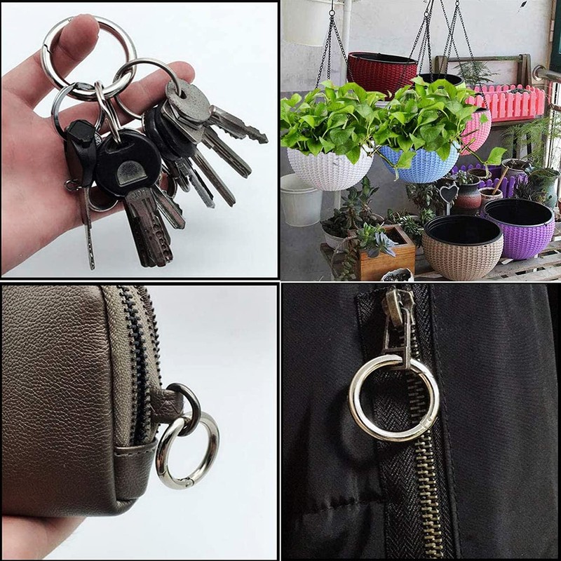 Design: key rings for bags and backpacks, sturdy and durable, smoothly open and closed. Designed with built-in spring, makes it very easy to use and convenient to carry to ensure your decorations will not fall off when you place them.