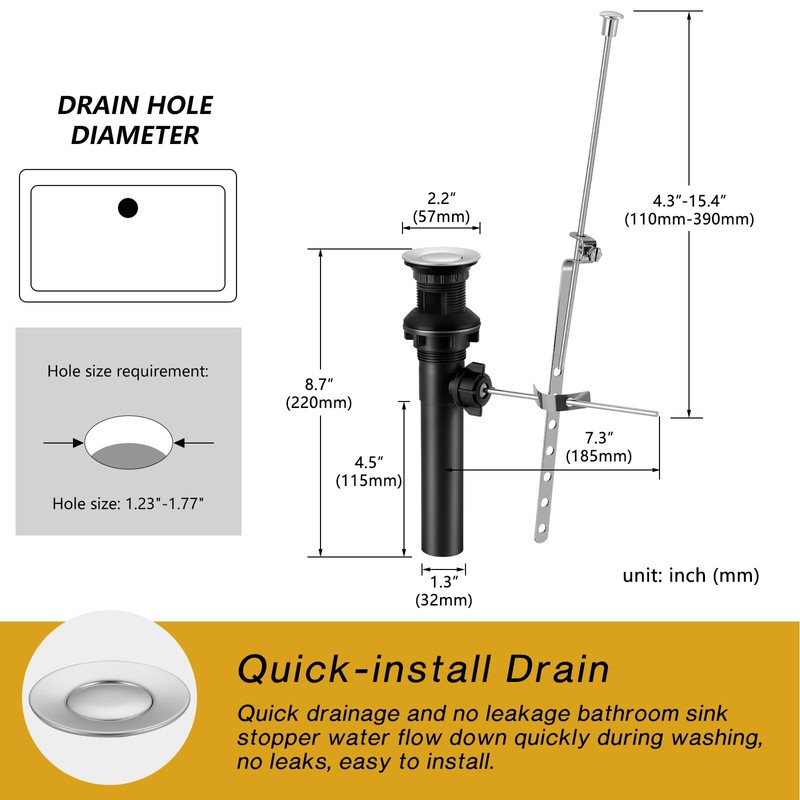 - 【Lift Rod Drain Stopper】This bathroom faucet with lift rod drain stopper is compatible with sink with overflow. The design of the pull rod drainage can minimize your hand contact with the used water, making it cleaner for daily use.