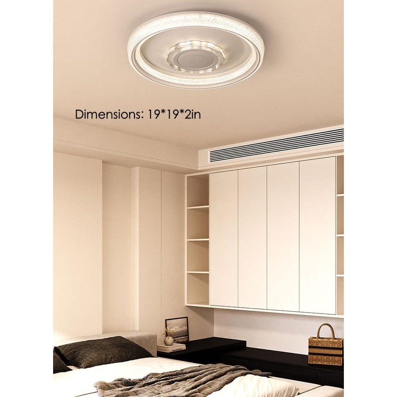 KZU Ceiling Light, 19" LED RGB Light with Bluetooth Speaker, Dimmable Lighting, Bluetooth App & Remote Control, Acrylic Light Cover, Night Mode for Bedroom, Living Room