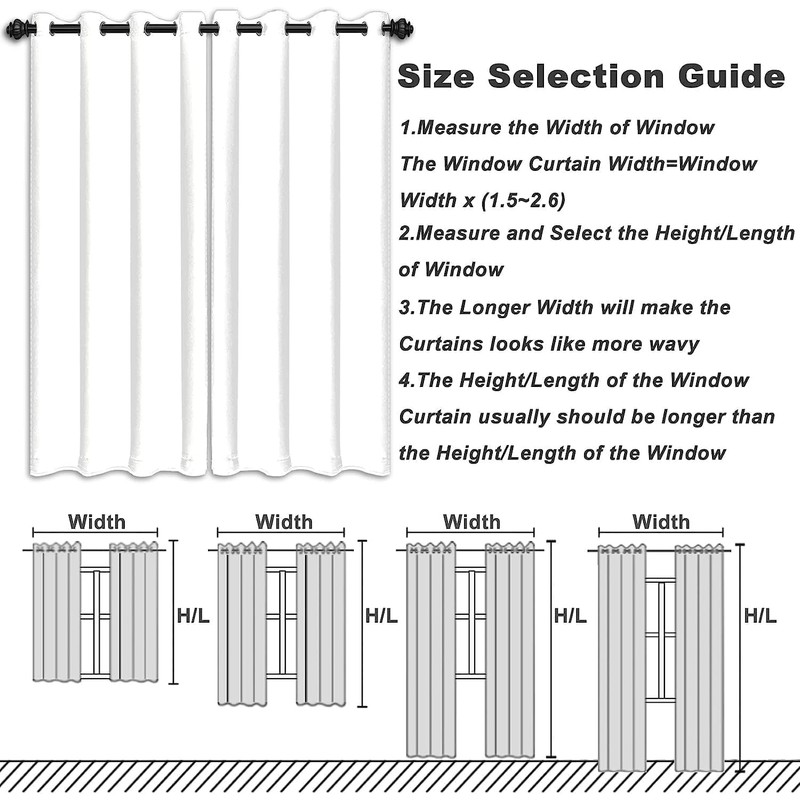 These blackout curtains are crafted from a durable soft and thick triple weaved blackout fabric which can block out sunlight and UV rays. The darker color of the fabric, the more light it can block. Our energy efficient and noise reducing window curtain panels help reduce outside noise and insulate against summer heat and winter cold and retain energy indoors to save energy costs. Also use these Light blocking curtains as room dividers to block the view, create a private space when needed.