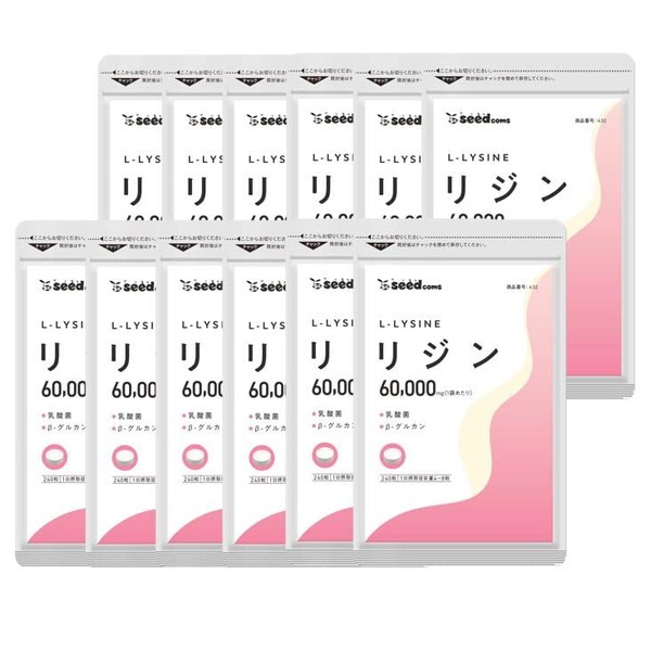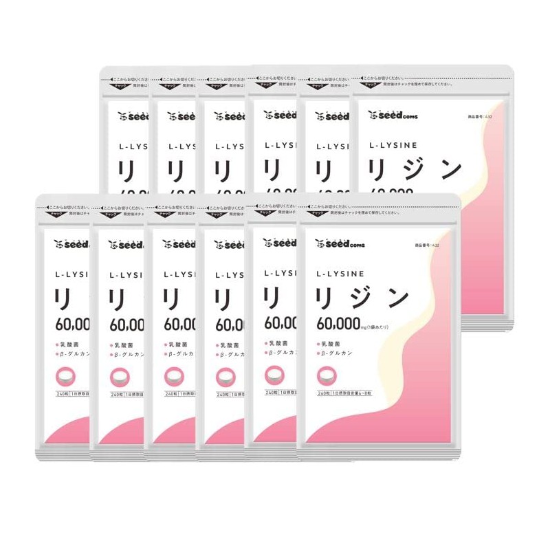 シードコムス L-リジン サプリメント 1袋60,000mg配合 リジン 乳酸菌 ユーグレナ 酵母 β-グルカン GMP認定工場国内製造 必須アミノ酸 (12)