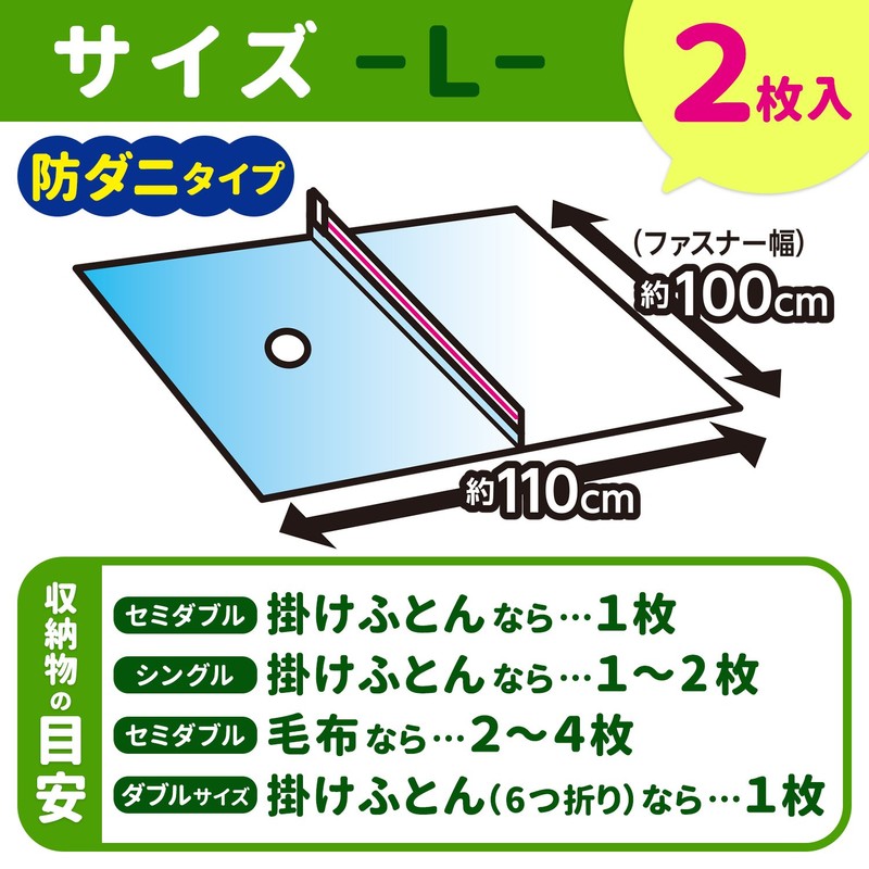 レック 入れやすい 防ダニ ふとん圧縮袋 Lサイズ 2枚入 (自動ロック式) 大きめ布団用 H00089