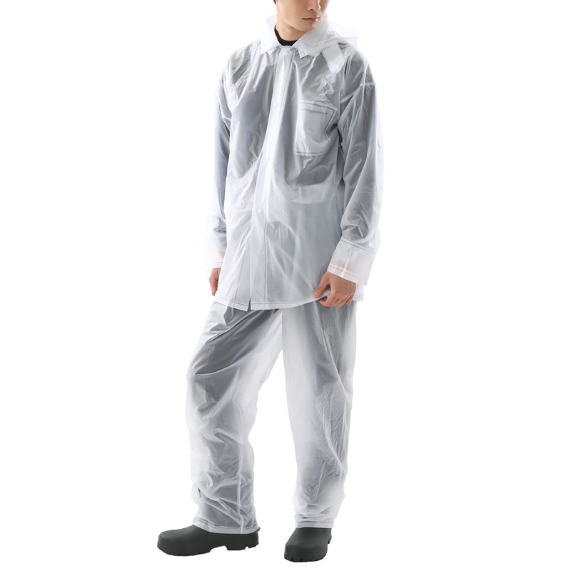 [カジメイク] ビニールレイン 上下組 レインスーツ クリア L