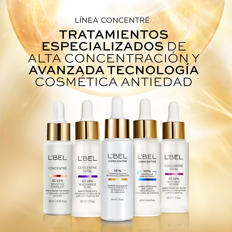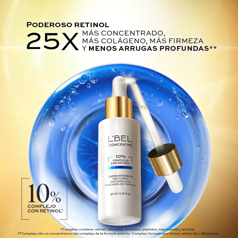 L'BEL - Concentré Sérum de Retinol 27 ml, Sérum Antiarrugas Profundas, Mejora Firmeza del Rostro, 10% Complejo con Retinol, para Todo Tipo de Piel, Uso Nocturno