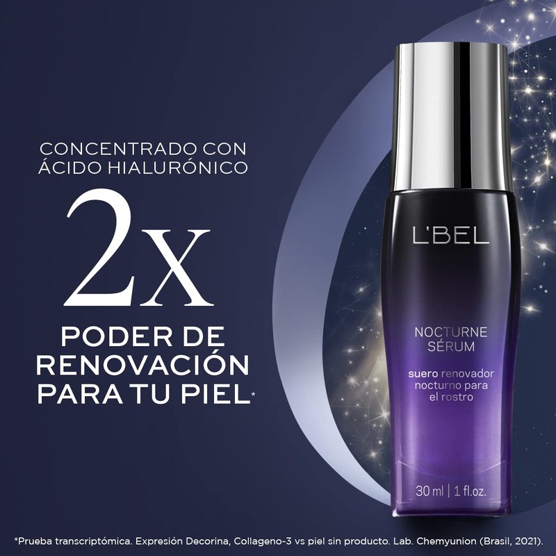 - Nocturne Sérum: Es un sérum facial antiedad concentrado con ácido hialurónico, con doble poder de renovación para tu piel. Noche a noche, reduce líneas de expresión y suaviza las señales del cansancio.