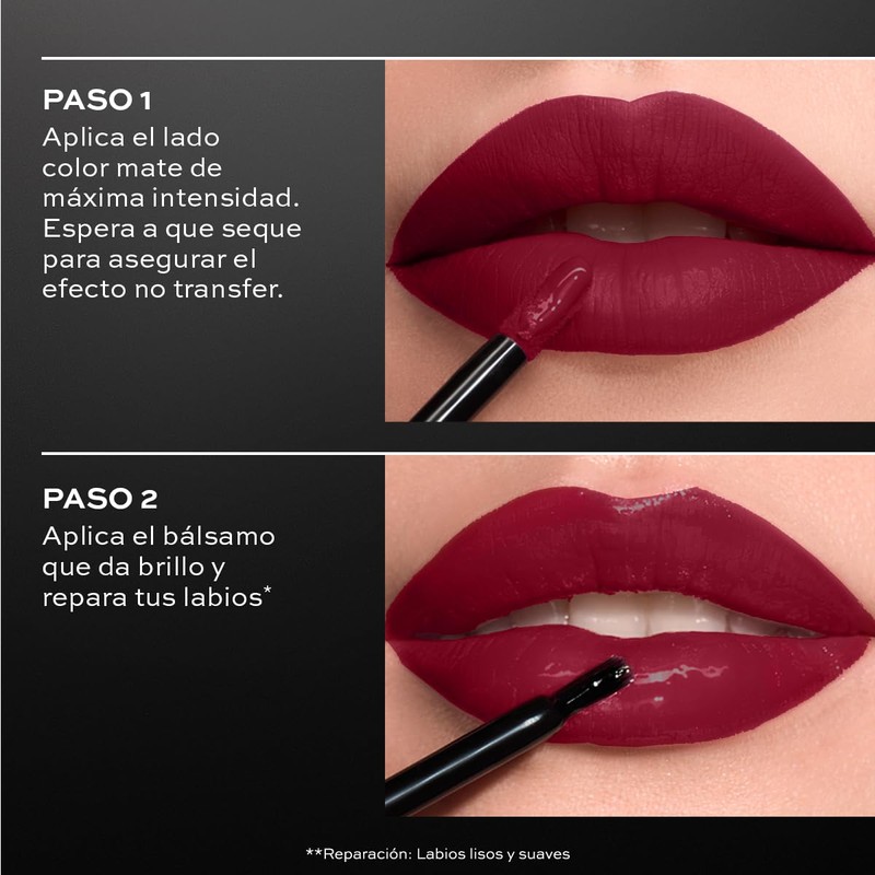 • La novedosa fórmula de este labial de larga duración dual con Vitamina C Complex repara tus labios dejándolos suaves, voluminosos e hidratados.