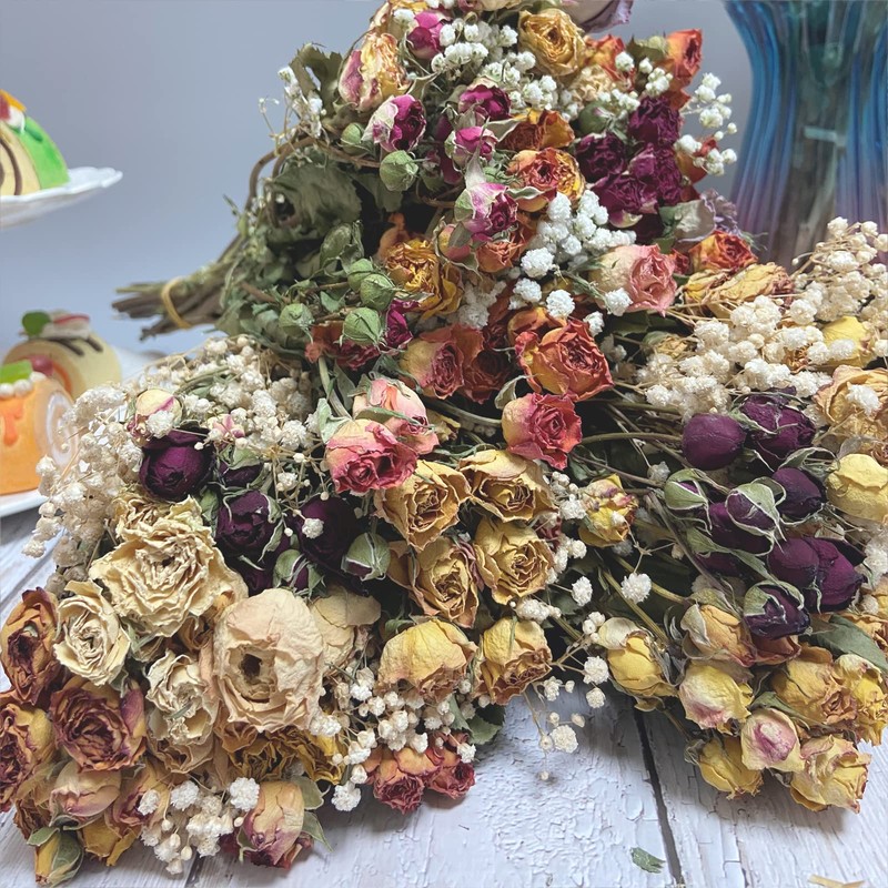 - 🌸 Package include 2 bunches of dried flower bouquets, each bouquet include 15 spray roses heads, decorated with baby’s breath.