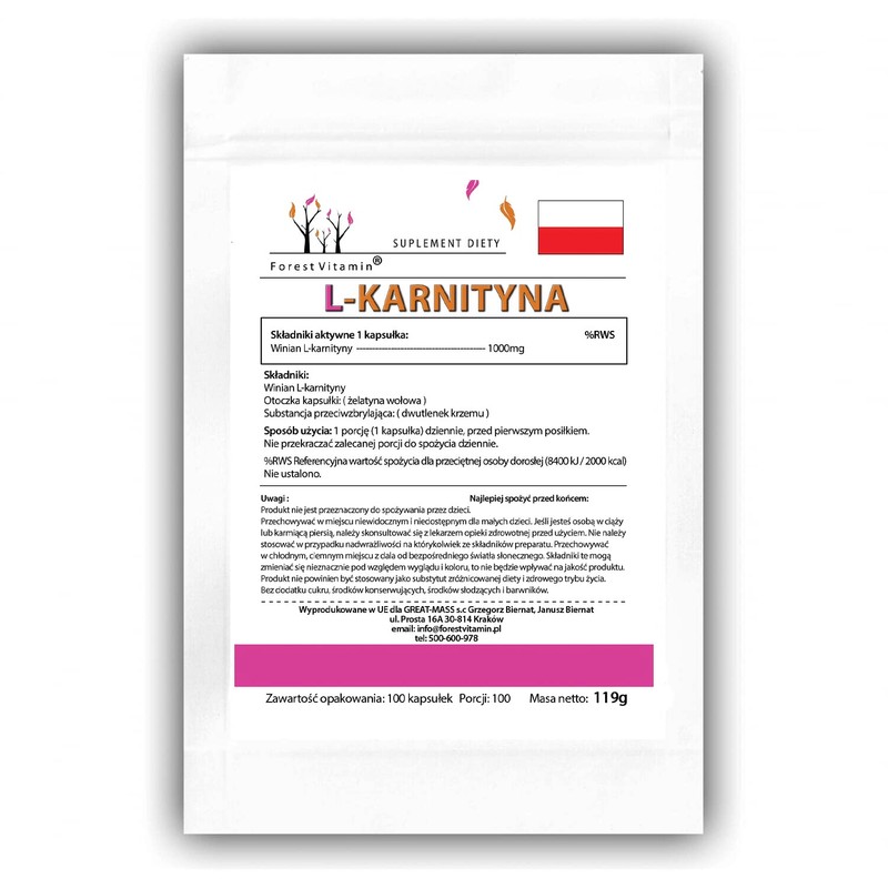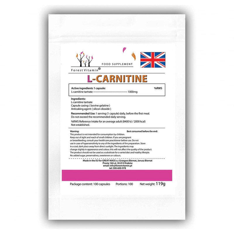 L-CARNITINE - Forest Vitamin - Strong L-Carnitine 1000mg - 100 Kapseln - L-Carnitin Tartrat - Gesundheit & Schönheit