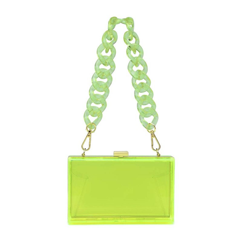 L-COOL Cute Transparent Acrylic Shoulder Bag Clear Crossbody Evening Clutch Purse Handbag With Two Chains For Women (T-Green)