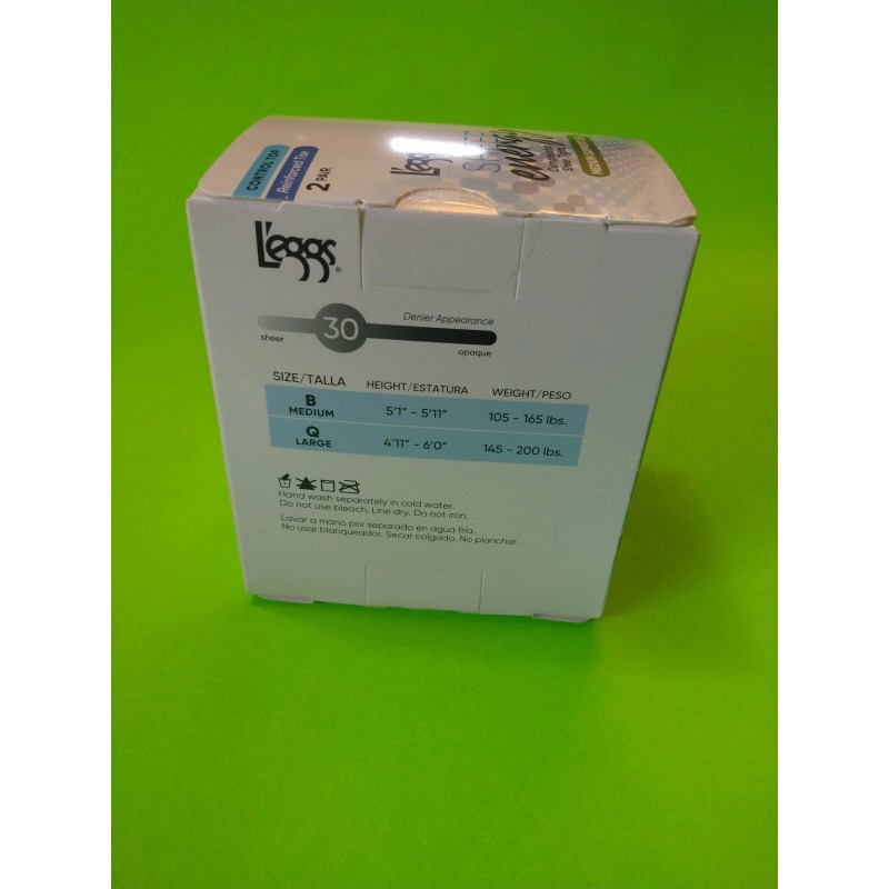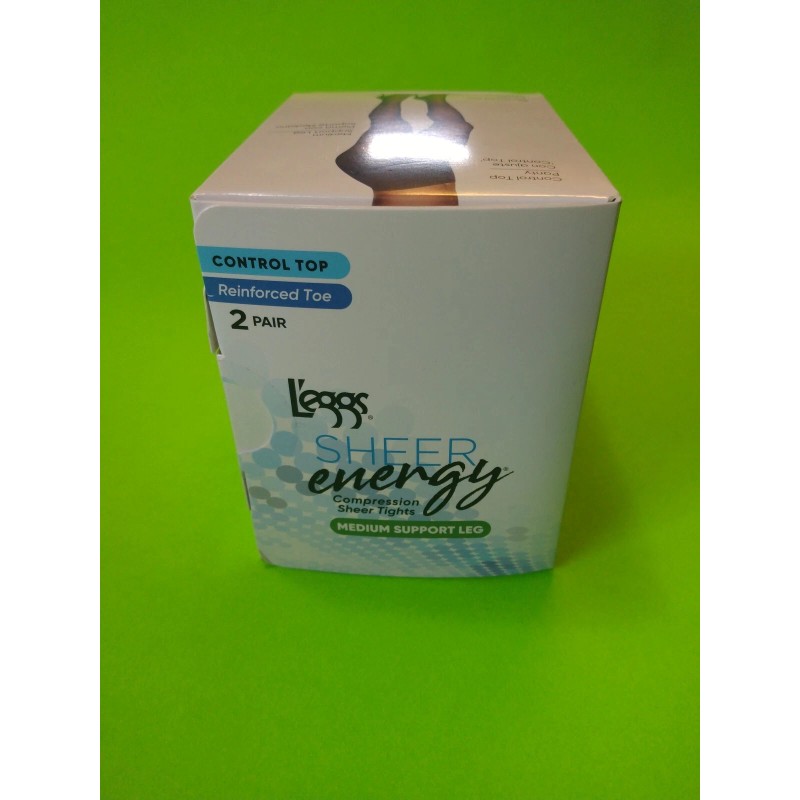 L'eggs Leggs Sheer Energy Control Top Q Jet Black Medium Support Leg 2 Pair