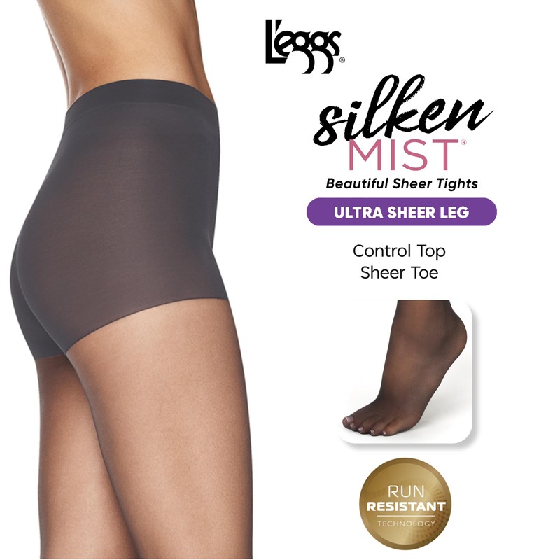 L'eggs Silken Mist Ultra Sheer Tights with Run Resist, Control Top, Sheer Toe, Black Mist, Size B (Pack of 3)