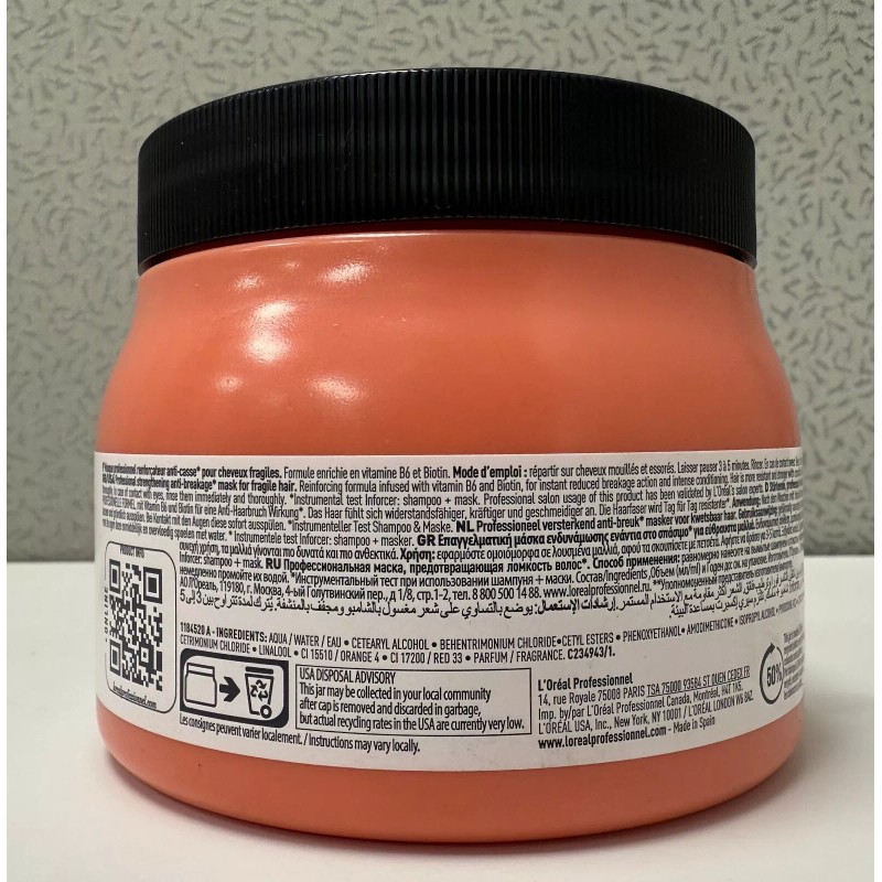 Transform fragile, breakage-prone hair with the L'Oréal Professionnel Inforcer Mask, your ultimate hair-strengthening treatment. Specially designed for thin, damaged, or over-processed hair, this intensive, salon-grade formula is enriched with a powerful blend of Biotin and Vitamin B6—two hair-loving nutrients known to boost resilience, encourage growth, and leave hair feeling stronger from root to tip.