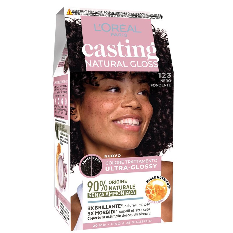 - Inhalt: 1 x L'Oréal Paris Semi-permanente Coloration Casting Natural Gloss, mit Farbcreme, aufschlussreicher Creme, pflegender Honigmaske und einem Paar Handschuhe, Farbe: Schwarz 123