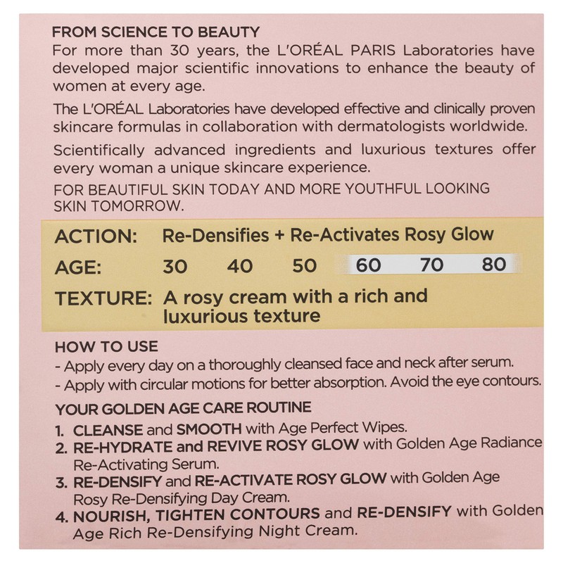 - Contents: 1x L'Oreal Age Perfect Golden Age, Day Cream, Rosy Re-Densifying Day Cream, Reactivates Rosy Glow, Volume: 50 ml