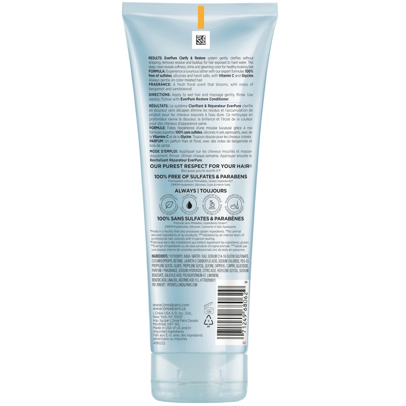 L'Oreal Paris Clarify Sulfate Free Shampoo with Antioxidants, Clarifying Shampoo for Hard Water Exposure and Styling Build-up, EverPure, 6.8 Fl Oz