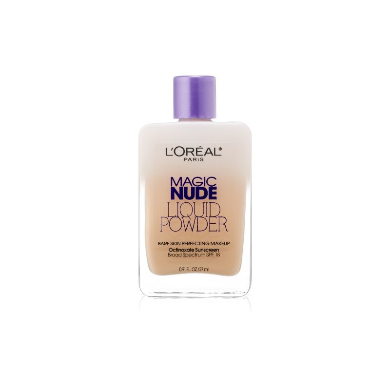 Get the ultimate un-makeup look with Magic Nude Liquid Powder Bare Skin Perfecting Makeup with SPF 18. Revolutionary liquid transforms on contact, leaving a soft powder like finish. This foundation is so amazingly lightweight it's like wearing no makeup at all! Just shake and apply – it’s magic!