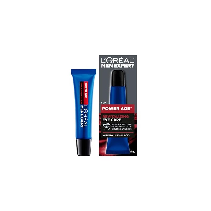 L'Oréal Paris Men Expert Power Age Revitalizing Eye Care, with Hyaluronic Acid, Reduces the Look of Wrinkles, Dark Circles & Eye Bags 15 mL
