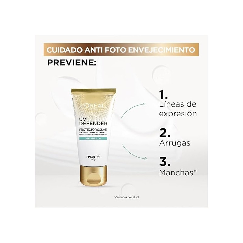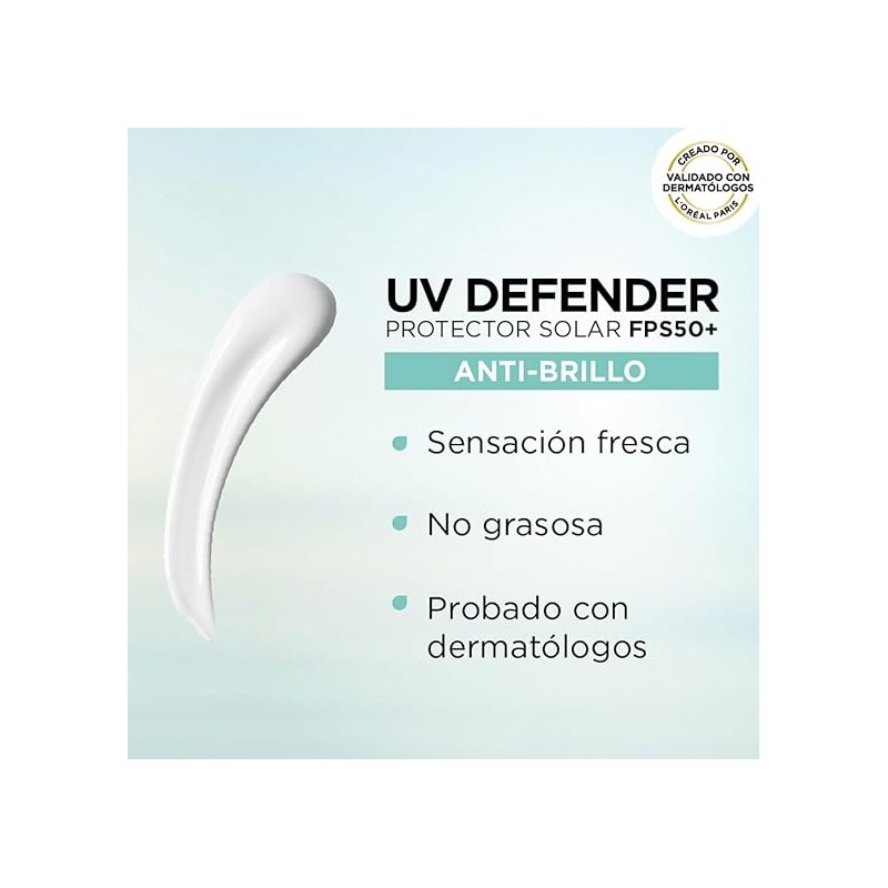 L'Oréal Paris Protector Solar Diario FPS50+ UV Defender Anti-Brillo, 40ml