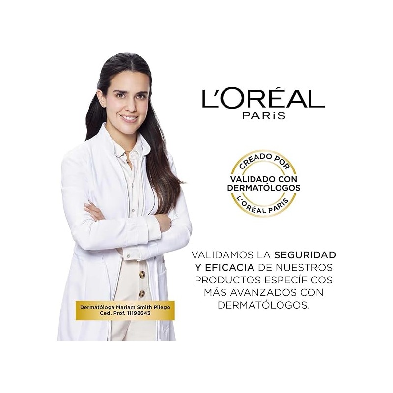 Cuidado diario de L'Oréal Paris con una exclusiva tecnología combinando muy alta protección FPS 50+ y ácido hialurónico puro para defender tu piel de la exposición diaria a los rayos UVB y UVA y del envejecimiento prematuro: líneas de expresión, arrugas, manchas*. *Debidas al sol.