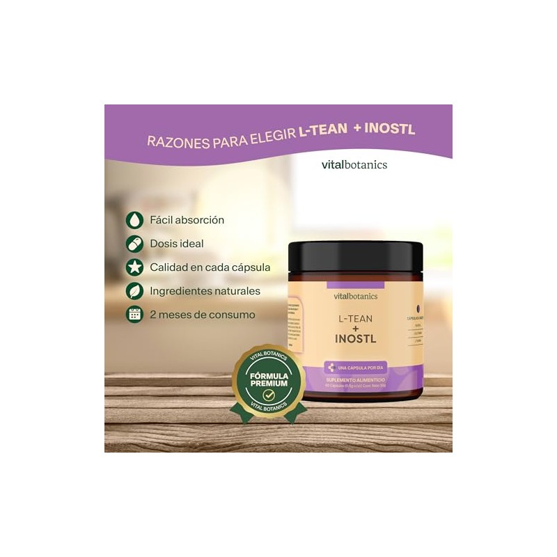 🌟 ⭐ L-Teanina + Inositol. 60 capsulas de 500mg (2 Meses). VitalBotanics. Multivitaminico con L-Glutamina, Suplementos Alimenticios. Libre de Gluten y Aditivos. Apto Dieta Keto. ⭐ 🌟