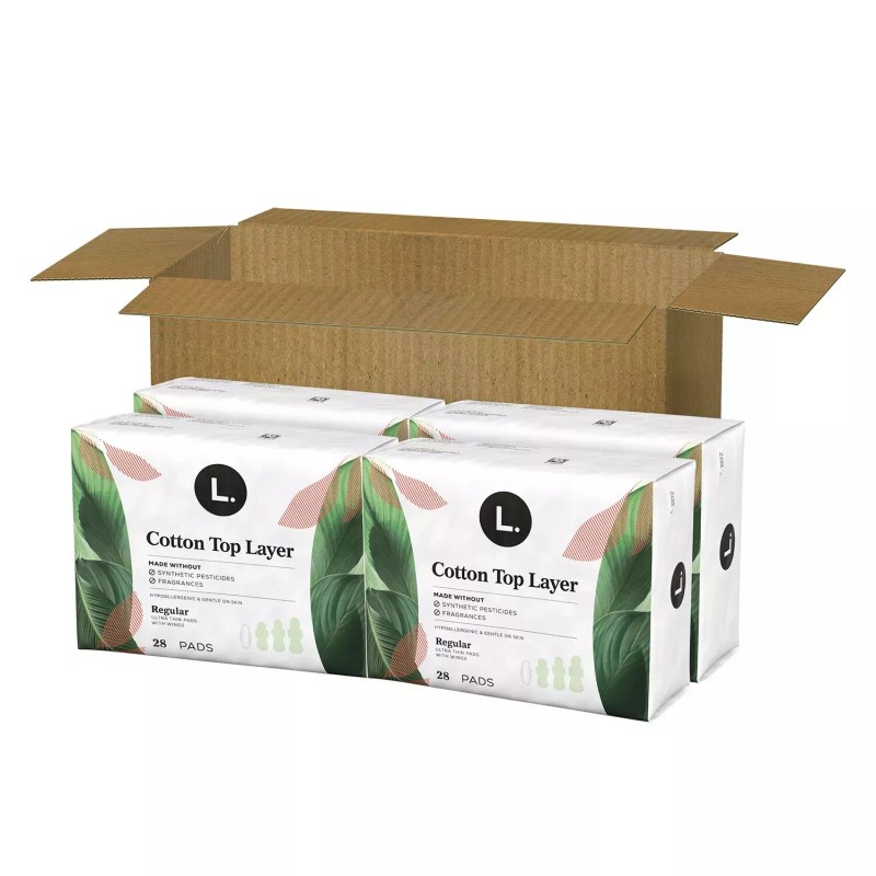 L. Ultra Thin Organic Cotton Regular Pads with Wings, 112 ct.