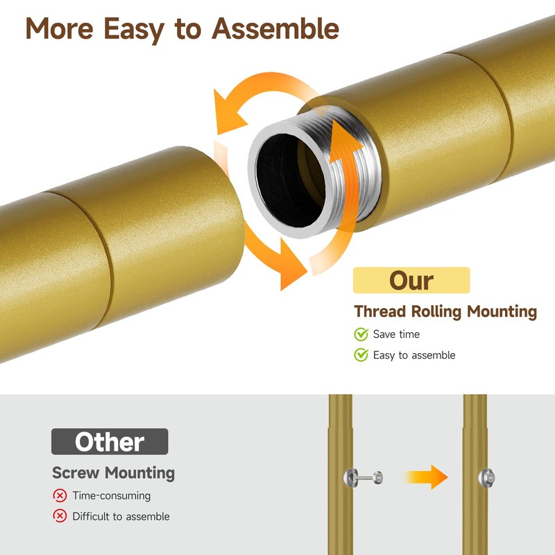 【Upgraded Threaded Assembly for Quick Installation】We've upgraded the connection to the corner closet system. Poles connect directly via threaded joints, making installation faster and more secure compared to traditional screw-based methods. Save time and effort while enjoying a rock-solid setup.
