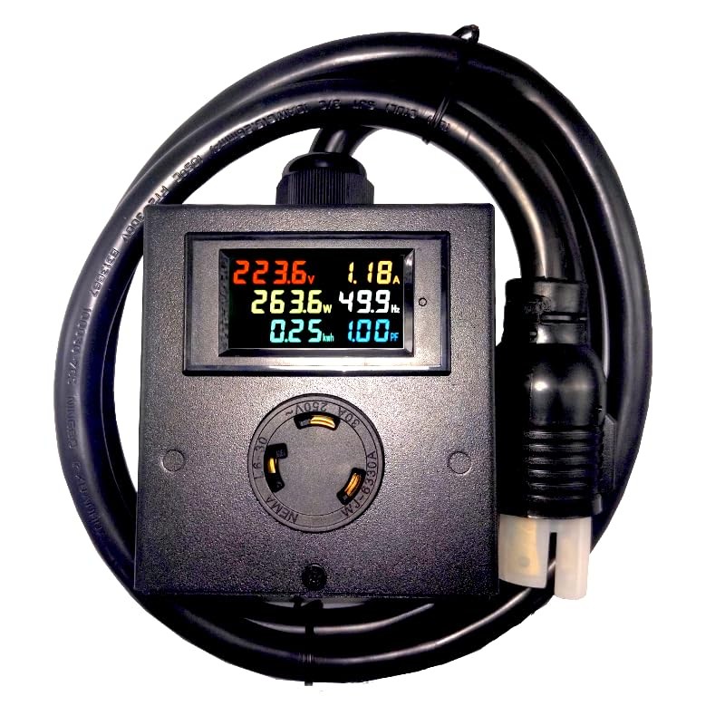 L6-30 30A AC Power Meter 120-240V Outlet, 5ft Cable & Plug Voltage Current LCD Display Digital Multimeter Watt Ammeter Voltmeter Monitor Heavy Duty Metal