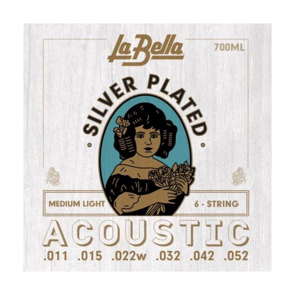 La Bella 700ML Silver-Plated - Medium Light, 6-String Acoustic Guitar String 11-52