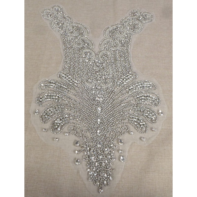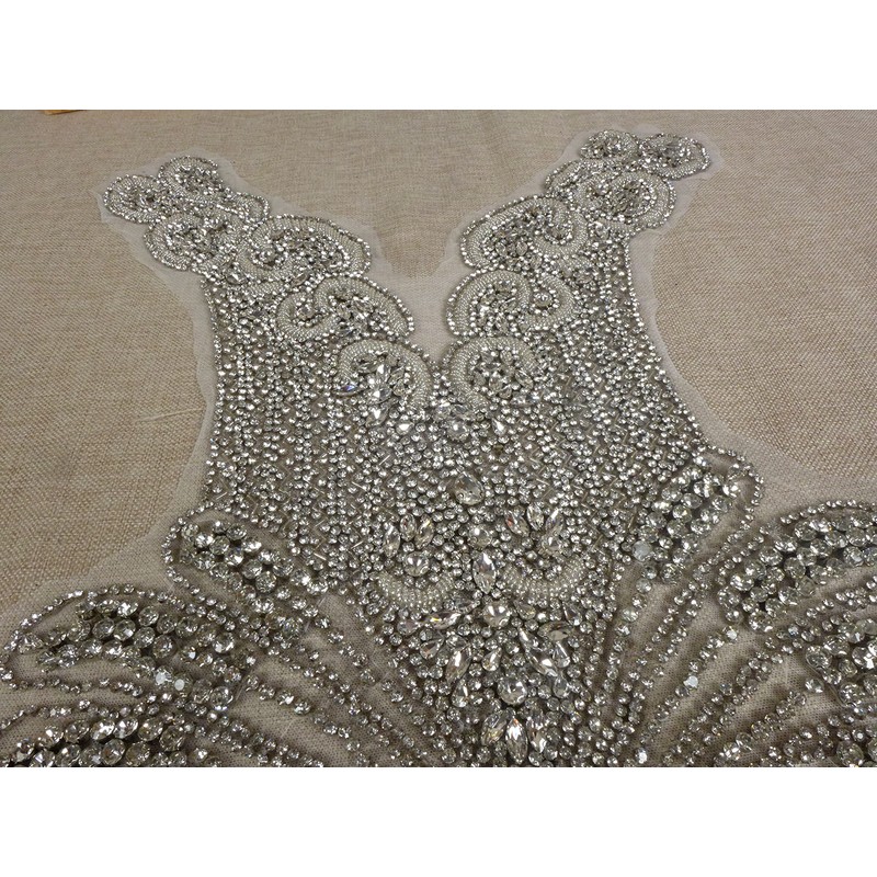 La Belleza Luxury Rectangular Rhinestones Handmade Beautiful Large Bodice Applique Patch Silver Crystals for Evening Bridal Dance Dress 25.6" x 15.7" (Silver)