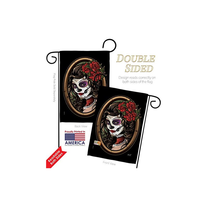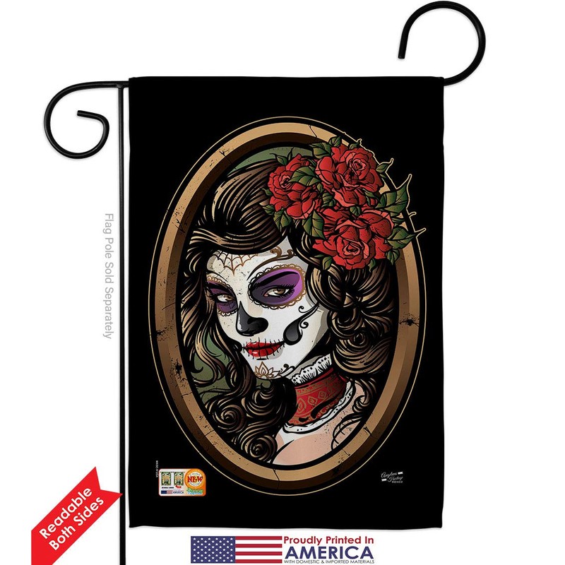 La Calavera Catrina Garden Flag - 2pcs Pack Fall Day of Dead Dia De Los Muertos Fiesta Mexican Party Autumntime - House Decoration Banner Small Yard Gift Double-Sided Made In USA 13 X 18.5