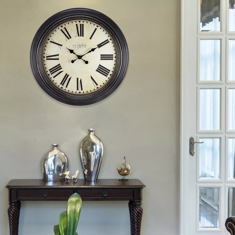 La Crosse Clock Co. 23" Plastic Antique Bronze Finish Analog Quartz Wall Clock