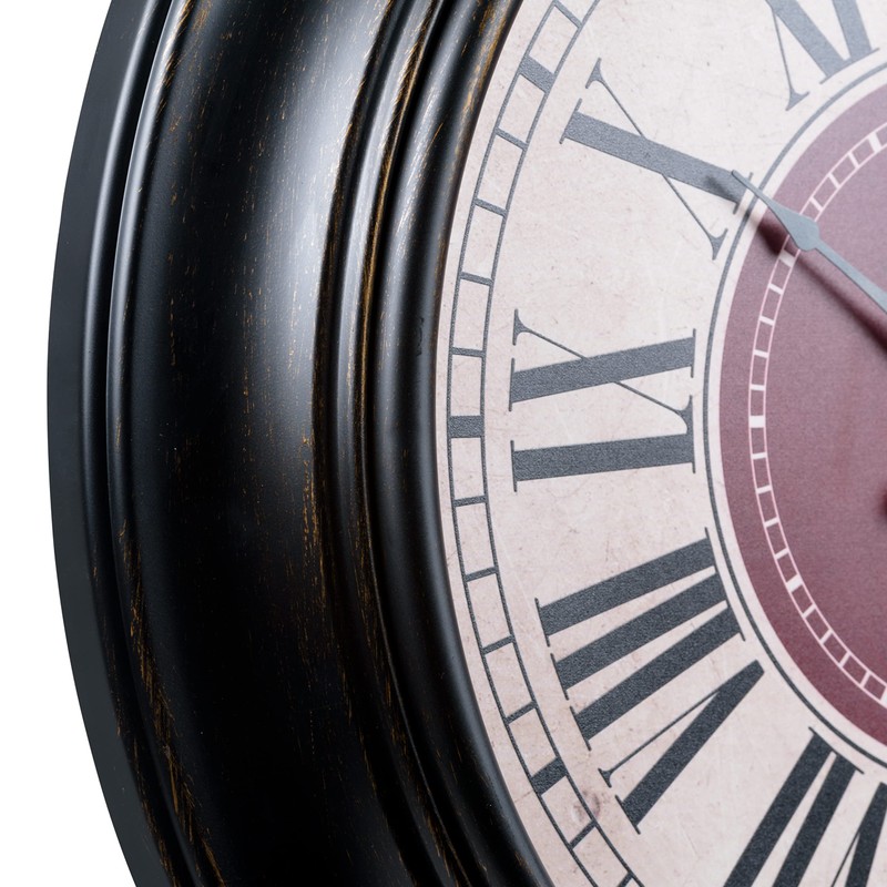 - Experience precise timekeeping with the silent clock movement that eliminates disruptive ticking. The black metal hands powered by accurate quartz technology move smoothly across the sophisticated aged dial, creating a perfect balance of traditional aesthetics and modern reliability in this 18-inch clock.