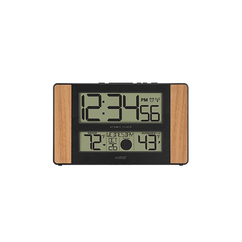 La Crosse Technology Atomic Digital Clock with Outdoor Temperature, Oak, 0