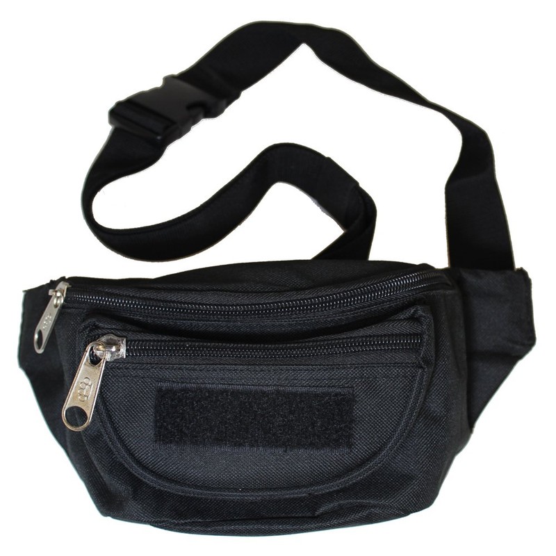 La Familia Bum Bag in Black I Belt Bag with 3 Compartments and Interchangeable Rip-Strip-Patch for Men and Women, black, bum bag