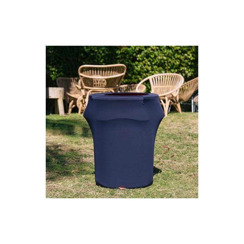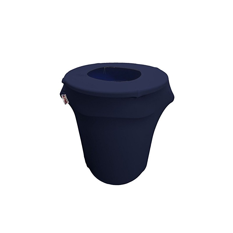 LA Linen Stretch Spandex Trash Can Cover 32-Gallon Round, Navy