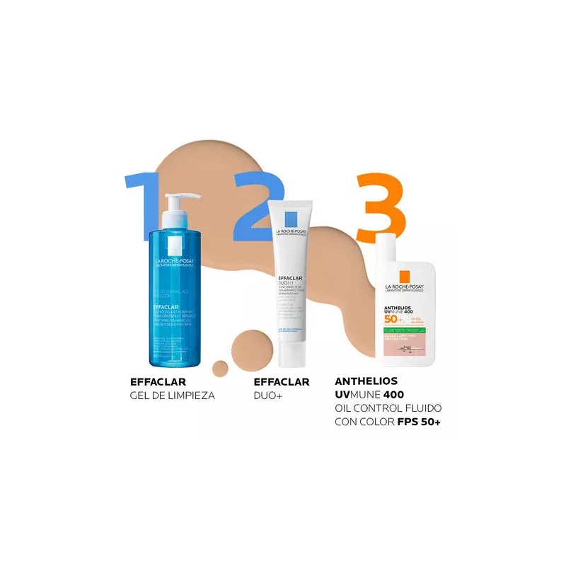 Anthelios UVMUNE 400 Oil Control Fluido FPS 50 con color, protector solar con la máxima protección UVAUVB para pieles mixtas a grasas en textura fluida. Brinda un acabado invisible y no graso que no deja marcas blancas. Con el mejor filtro patentado de La Roche-Posay Mexoryl 400 Nuestro filtro UV más eficaz contra los rayos UV más dañinos en la piel. Acabado toque seco que brina horas de efecto matificante en la piel. Para pieles grasas sensibles. Muy resistente al agua, al sudor y arena. Formulado para limitar el picor en los ojos. control.