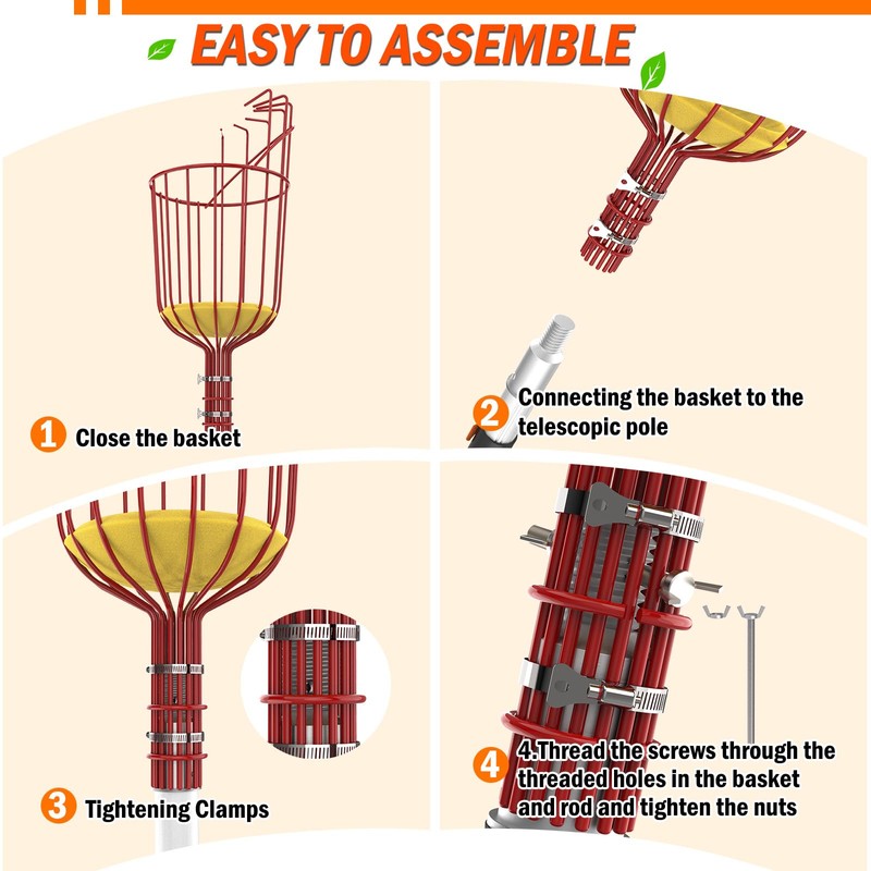 - Easy to Assemble and Use: Setting up the LAANPOLE fruit picker is a breeze, requiring just a few simple steps. Once assembled, you can focus more on harvesting and less on assembly time, easily using this fruit picking pole for efficient picking.
