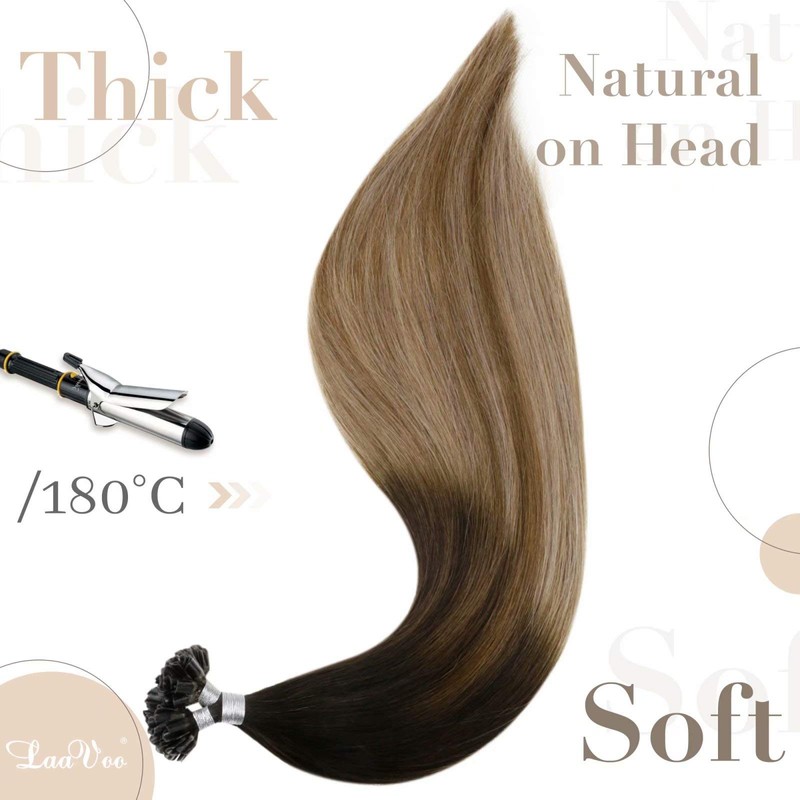 - [Hot Fusion]: LaaVoo U Tip Hair Extension is the Most Suitable Choice to Get a Thicker Hair. The U-tip of the Root is Made From Italian Keratin Tip, which is Hot-melt and Easy to Stick on the Hair by Using a Heating Element. The Keratin U-tip Bonds Hair Extensions Allow for Long-lasting Installations.