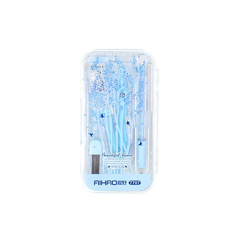 LABANCA 8 Pcs Compass Set with Protractor Rulers Pencil for Math Geometry Blue