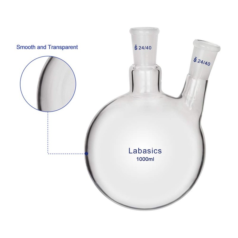 Labasics Glass 1000ml 2 Neck Round Bottom Flask RBF, with 24/40 Center and Side Standard Taper Outer Joint - 1000ml