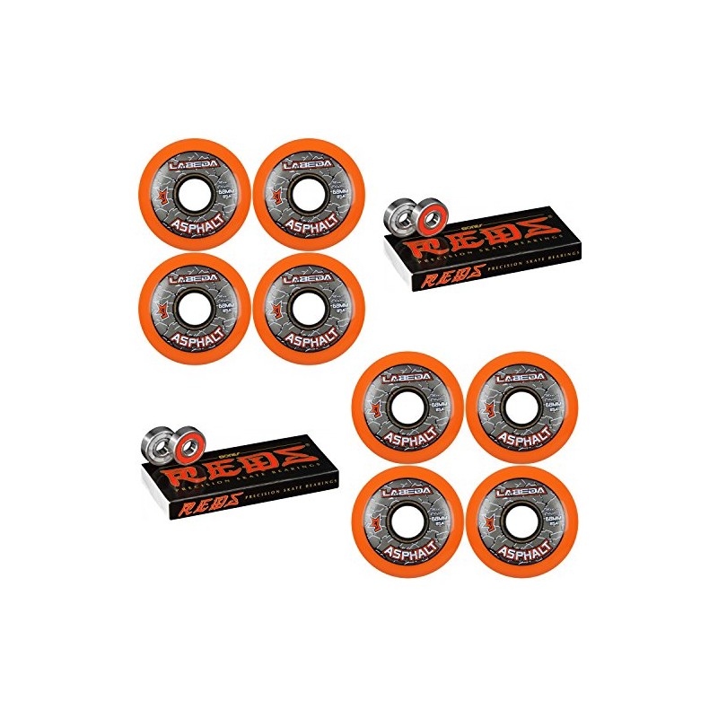 Labeda Asphalt Inline Roller Hockey Wheels 68mm Orange 85A 8-Pack Bones Reds