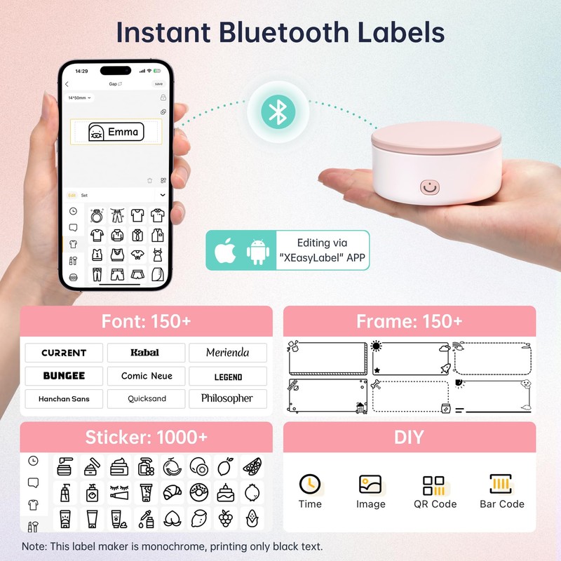 • ⑥【Multiple Creative Templates】XEasyLabel app offers 1500+ templates with fonts, frames, stickers, and more. Personalize with your own designs.